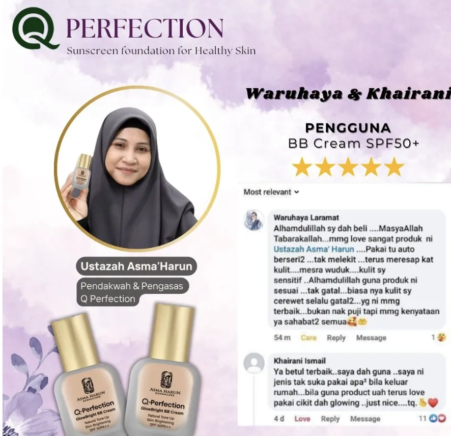 Lihat Sendiri Apa Kata Pengguna Skincare Asma Harun Kongsikan Kulit Kusam & Berjeragat… Sekarang Licin, Cerah & Glowing Hasil Selepas Menggunakan GlowBright BB Cream